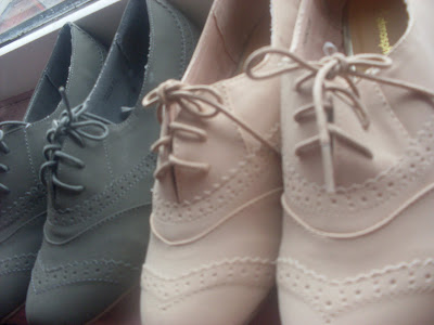 Sorry rant over, I'm a little obsessed with brogues. Not only do I find them to be the height of comfort but they look great as well, a perfect substitute for the totally ordinary dolly shoe or overly casual pump. I love these brogues that I found in Primark, yes Primarni people, for a meer £8. Very impressed, so much infact that I bought them in two colours as you can see, the nude pink and the slate grey. Can't decide which I prefer. Any thoughts?